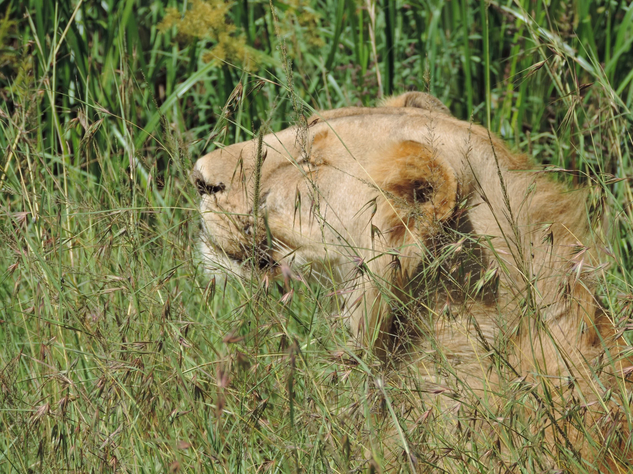 During our game drive we once again saw a lot of animals including cheetahs, lions and hippos. We saw the cheetas quite early in the morning basking in the sun. This was three brothers sticking together which is quite rare. They didn’t mind us at all. Shortly after we saw some lions. One alfa male, one female and a young male that barely had any mane. We also passed the Tanzania border to Sarangeti, but no passports were needed because you need to cross a river to get into Tanzania.