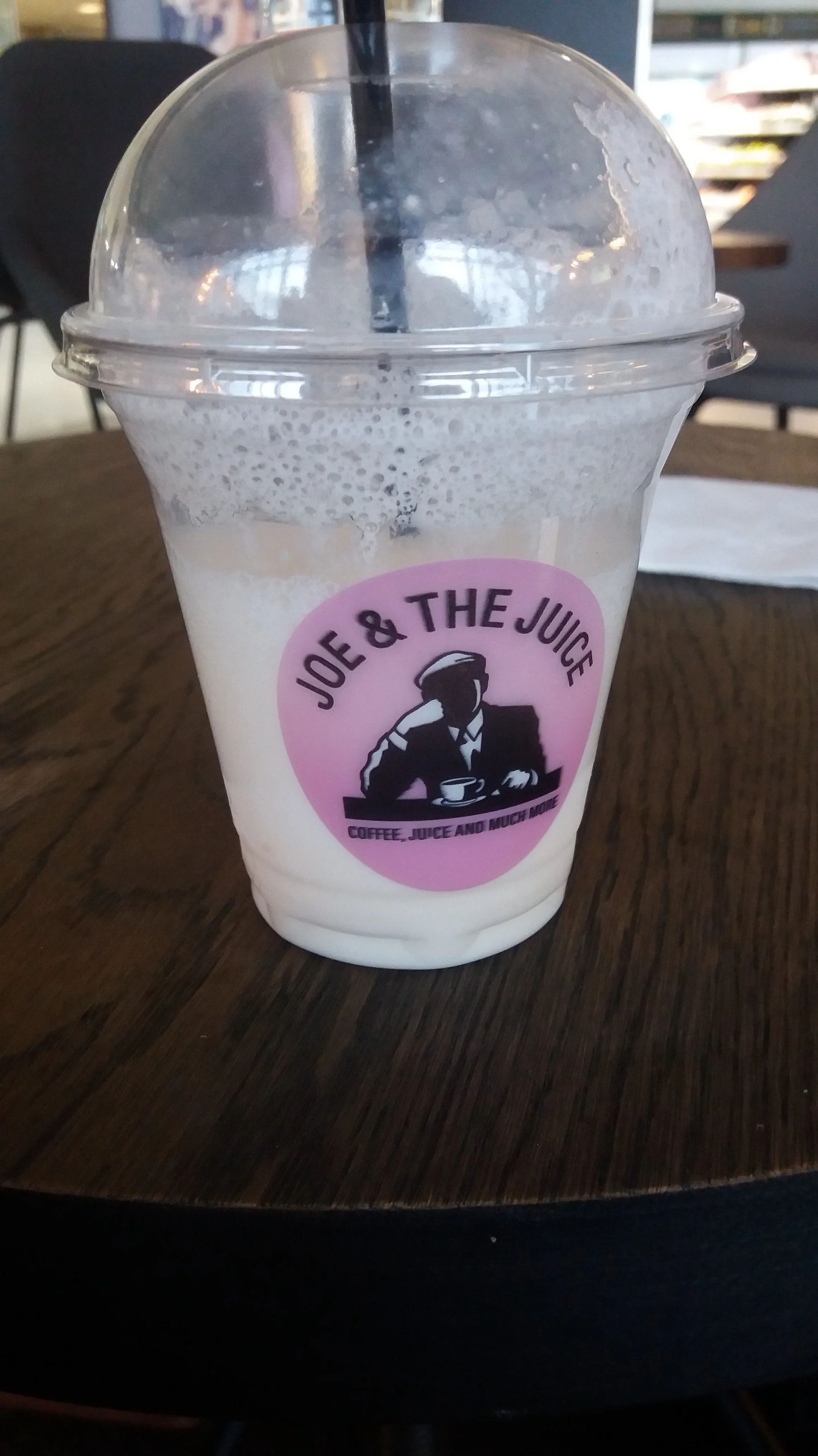 You usually say the mandatory travel beer, it is a little early for that. I say travel smoothly instead! Really good! Organic lemon and vanilla milk 😛